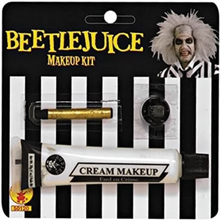 I bought this item to do makeup for Beetlejuice this past Halloween. As I mentioned in the title, this kit is great for a starter/base for any Beetlejuice. Some green makeup with a brush/sponge is needed for the moss around Beetlejuice’s head, and to make the effect really pop, apply a couple layers of Liquid Latex using a sponge to dab it on allowing a few minutes inbetween to dry. The tooth wax created an awesome effect when paired with “Zombie Tooth Paint” making my teeth look horrible. This kit would be perfect if came with green makeup and liquid latex. For the price and contents, 4 stars.