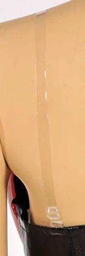 It looks really nice on. I have an hourglass figure size 12 (I’m in between 12 and 14 but for the most part, I’m a size 12); 36DDD-31-41 and I bought a Large. The top fits perfect and the bottom feels snug but doable. I fill out the top so I don’t need the clear straps to hold the top up. If you get the correct size and tie up the back tightly (the lacing in the back is long so there is a lot of lead way for size adjustments), the top will stay on. If you are smaller on top, you may still need the clear strap to help hold the top up or at least some padding to fill it to give it some lift. It’s a 2 piece so all the ladies out there that want to hide the baby roll from a c-section, this will definitely help hide it. If you’re adjsuting the corset yourself, I’d adjust the back of the lacing before clasping the front together. It may take a few tries to get the right amount of lacing in the back but it’s easier to do this than constantly finding someone to help you. I got it properly on the third try. The outfit is very flattering, feminine, and sexy in the Harley Quinn fashion. Very happy with this costume!
