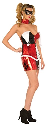 - Deluxe officially licensed DC Comics Harley Quinn costume with corset, skirt, collar, and mask in reusable garment bag
