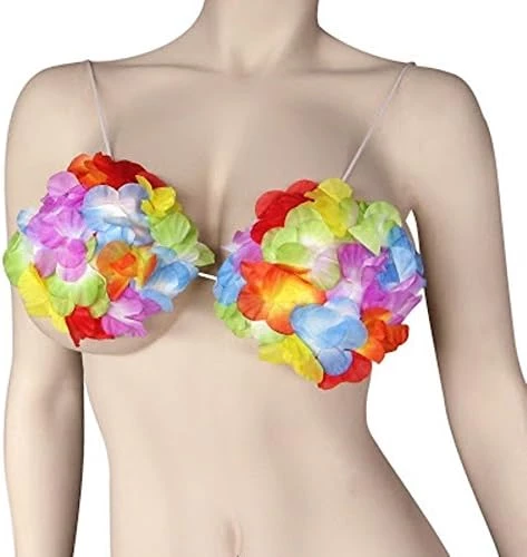 - Fun and festive Hawaiian hula dancer silk flower bra