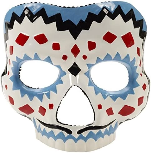 This is a nice, simple mask for Day Of The Dead, or Halloween, or any time you want to have a facial covering without any serious limits to your senses. Not heavy enough to be distracting, with large eye holes so you don’t feel you have tunnel vision. you can wear a balaclava under it to complete the “Dark facial holes” look, but it isn’t necessary. While not in the more recognized flowers and playing cards suites as seen in other Day Of The Dead designs, it does quite nicely.