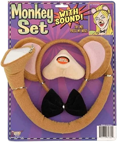 Bought the monkey set for my halloween costume – the ears were great but the tail strap was too small, so we had to affix it using a safety pin to my jacket. The nose was difficult to breathe through, so could not be worn for long periods of time.