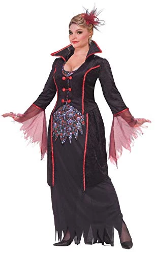 Lady von blood adult vampire costume includes dress, caplet, and collar. Plus size fits most women, up to size 22. For more than 30 years, forum novelties has been a leader in the costume industry, as well as the joke, trick, magic, and novelty gift item business. Forum offers over 8,000 items to choose from, ranging from baby costumes, to adult and plus-size costumes, to pet costumes. Look to forum novelties for all of your halloween, luau, christmas, mardi grass, and st. Patrick’s day supplies. From funny to frightening, forum has it all