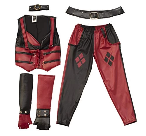 So I’ll start by saying I wore this to comic con and got SO many compliments. This was my first cosplay- and I wanted to look like I knew what I was doing even though in reality I didn’t. I’m going to break down this review into different parts for better reference and I’ll be as real as I can be.Sizing:I’m about 5ft tall and am pretty slim with a decent amount on top (got it? got it.) I got a size small and the costume definitely needed alternations! I’ve never sewn before- but this costume needed taking in BADLY because I’m pretty thin. I had to take in the gloves and pants more than 3 inches! So fair warning- if your thin- you’ll need to fix this up if you don’t want to look like a clown (no pun intended haha). The length however I had no problems with thankfully! The top ran incredibly small for me. I’d say if your an A cup you’ll be okay, but if youre pushing a B-Cup or C-Cup be warned. I found myself squeeeeezzzing into this. Thankfully I didnt break the material- but it felt like I would. The gloves are HUGE and frankly unappealing aesthetically. They are thick and foam padded- I’ve advise to find alternative gloves.Material/Comfort: While I’m sure most of you know, I’ll make this totally clear. The material is not that stretchy. You have been forewarned- sizing is a must haha. While I found the material decently breathable – the foam parts in the top and gloves kill. They are really insulated and I got hot ALOT. (Granted I live in florida so its always terrible in costume outside). As a matter of fact the gloves are so bulky and hot that you may as well just toss them. I found myself putting up my pants CONSTANTLY. Even with alterations. Even with the waistband in the pants (which honestly serves no real purpose because its not a true waistband. Maybe its the material? All I know is walking up stair was a pain and bending/sitting was nearly impossible because of how low cut the pants were. Regardless, I managed. All the accessories have velcro and stay just fine and looked pretty good even as a cheap costume set. (Not if your a professional cosplayer- but pretty damn OKAY).Notations: Be advised the costume does not come with boots/bootcovers and the pants do NOT have pockets. Just to be clear.Overall I am beyond glad I made the choice to purchase this. I constantly had people coming up to me asking to take photos and quite a few people said I was one of the better Harley’s theyde seen (although I had makeup/wig/personality help). I got a TON of compliments on my costume and it was worth the small issues I had and the time I put into alterations because the costume was SO cheap. I think in total I spent less than $50 on my cosplay. That’s unheard of for one that turned out so well put together.If you want a cheap costume to make a big impression and don’t mind doing a little work on your end- get this costume. I’ll admit however next time I will search for other avenues simply because of the sizing issues and pants malfunction but for the money it was worth the hassle.