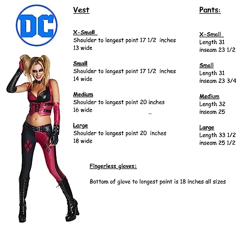 I am giving this costume only three stars because I’m dissatisfied by the condition it arrived in. I ordered from Best Costumes & Toy Deals. I scoured the reviews and other reviews from different stores, and knew what I was getting into. I read about the upper half being pleather and the lower half being polyester spandex that the legs were too short on, but honestly the pants don’t matter much if you’re planning on wearing tall boots. It was a good costume but there were some issues I’m hoping to iron out with this reviewPros: it was a fairly good costume, from other reviews, I knew what to expect. I ordered a large but I could’ve gotten a medium. I’m 5’4″ and carry all my weight in my boobs, butt, and thighs. Please DO NOT order by using the size chart provided. It’s off by a whole size range. I looked on party city’s website and a medium was more my size (I wear a size 10)Cons: the package did NOT come as described. The condition stated was new and as it may have been new from this marketplace it had obviously come from a Halloween store that had shut down for the season that the seller had gotten for a discounted price. Which is fine, I don’t mind a middleman, but you have to sell as is then. The paper in the costume bag that has the description and picture on it was all wrinkled and torn, the bag was all cloudy and dingy, and the costume was literally wadded up and thrown into the bag. The belt had crease marks on it like someone had worn it and had bent over or moved around A LOT in it.Be forearmed, that the top is a pleather fabric while the pants are a stretchy spandex and were very short. The choker was tight on my neck and the gloves are as everyone says. They look like a four year old cut them and are stitched too small.So overall it was a good costume but you definitely get what you paid for and GO A SIZE DOWN or look on partycity.com for the real size charts. I’m really bummed because I was excited about wearing it but I’ll spend the money to buy new from the store.