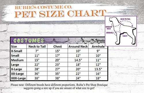 - CONSULT THE RUBIE’S PET SIZE CHART and watch the measuring instructions video before selecting size