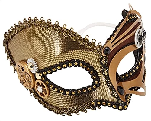 Add Victorian era sophistication and Industrial era strength to finish your costume with this adult Steampunk Venetian Half Mask. Metallic gold mask has a decorative gold panel covering one half, adorned with silver and gold gears, and eyeglass arms for a comfortable fit. One size fits most adults and older teens. Half mask only; other costume pieces and accessories available separately. Costumes are available in many sizes and styles to coordinate with friends and family for group costume fun! Look at the STEAMPUNK line by Forum for other fun costumes and accessories. Wear costumes for Halloween, dress up, parties, cosplay, movie premieres, and more. Since the early 1970s the founders of Forum have been delighting family and friends with magic, novelties, and costume accessories. Forum offers over 10, 000 items to choose from for all of your Halloween, luau, Christmas, Mardi Gras and St. Patrick’s Day supplies. From funny to frightening, Forum has it all!