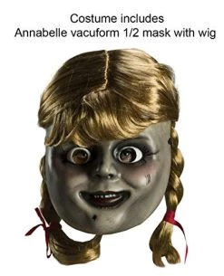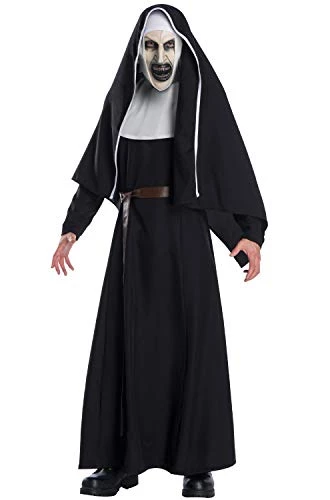 The Nun Deluxe Adult Costume Sure to terroize the neighborhood this Halloween! Costume includes: Dress, collar, belt, veil with attached hood and plastic front face mask with elastic band. Available Sizes: Standard – One Size This is an officially licensed The Nun costume.
