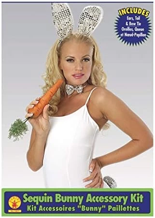 - Hundreds of reflective sequins bedazzle this tail, tie and bunny ear headpiece