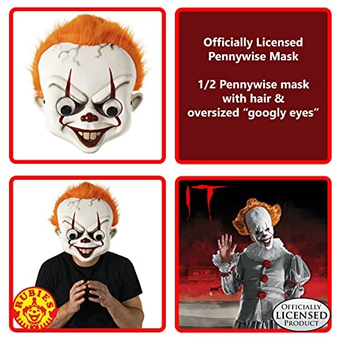 - OFFICIALLY LICENSED Pennywise costume mask, look for Warner Bros. trademark on packaging and label to help assure you’ve received authentic safety-tested items