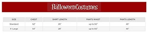 - Costumes are not sized the same as clothing; important to consult Rubie’s adult men size chart before ordering