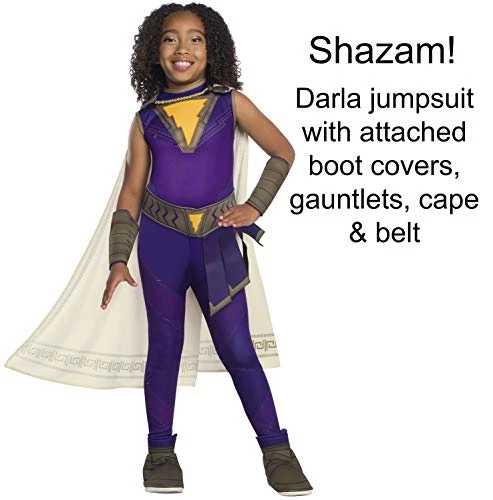 Make sure your girl and her friends are ready to send the Seven Sins back where they came from with the Shazam Deluxe Girl’s Darla Costume. This exciting outfit will make for an excellent gift for any little fan who loved the recent Shazam movie thanks to the fact that it is an officially licensed product which has been approved for authenticity and attention to detail. Featuring a purple girl’s vest adorned with lightning emblems, this ensemble also includes a white cape among other accessories for a look that’s ready for show time.
