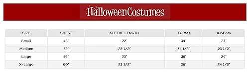 - IMPORTANT: Costumes are sized differently than clothing and vary among brands, USE THE SIZE CHART IMAGE when choosing a size