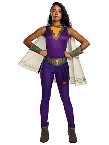 With Darla in the team the Seven Deadly Sins stood no chance. You need just say the words to be transformed into an all-powerful heroine who’s as precocious as she is innocent. The Deluxe Shazam Adult Darla Costume is just what you’ve been waiting for to join in on the comic book fun with the rest of your super family. This product features a purple jumpsuit adorned with golden thunderbolt emblems resulting in a striking contrast that is only further enhanced by the white cap that is also available.