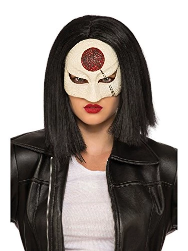 Complete your Katana costume with this half-mask featuring the icon markings as seen in the movie Suicide Squad. One size fits most adults and older teens. Officially licensed costume accessory. Look for Katana costume and wig to complete your look – and combine with friends in Harley Quinn, Joker, and other Suicide Squad characters’ costumes. Family-owned, family-focused, and based in the U.S.A. Since 1950, Rubie’s has classic and licensed costumes and accessories in sizes and styles for your entire family.